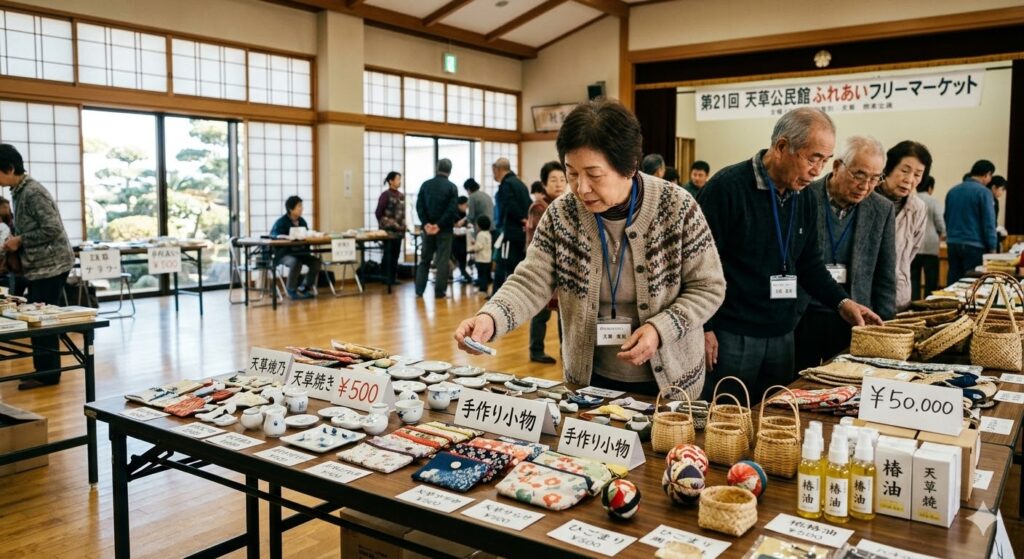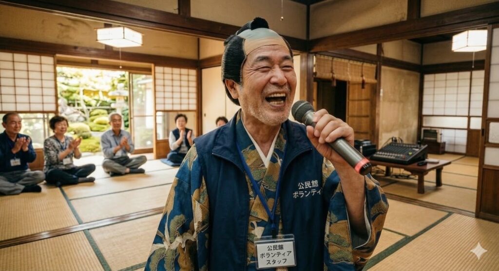 演目例: 懐かしのメロディ合唱、天草の民謡踊り、笑いあふれる漫談など。