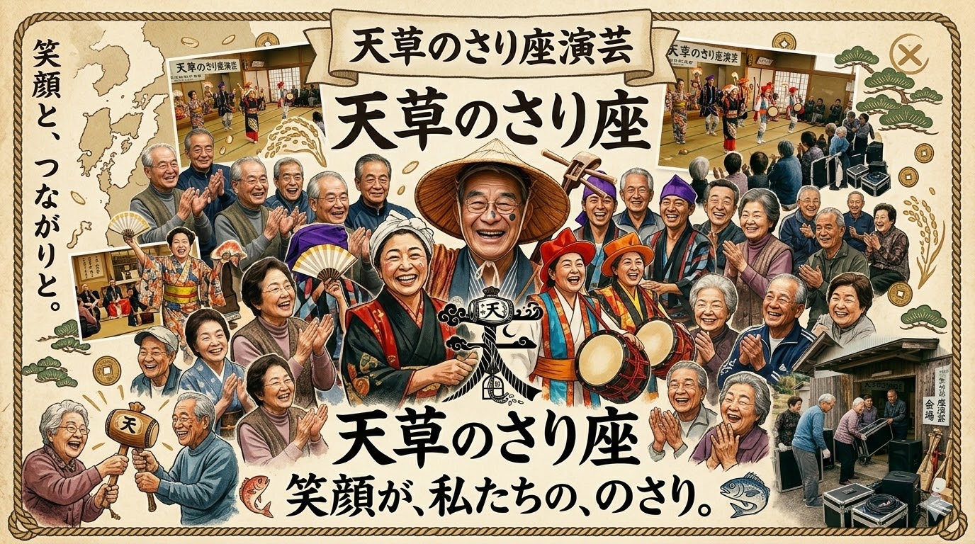 <主催>のさり座は、天草のシニアクラブ(天草市、上天草市、苓北町それぞれの老人クラブ連合会)と、天草地域ボランティア連絡協議会(天草市、上天草市、苓北町それぞれのボランティア連絡協議会)から成り立ちます。